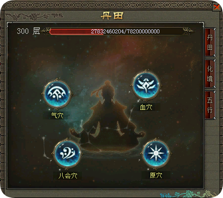 四穴根据丹田等级由低到高依次开启,不同穴位对应不同效果,每个穴位又分为多个穴点。待侠士潜心冲穴,层层递进,武学境界将一日千里。