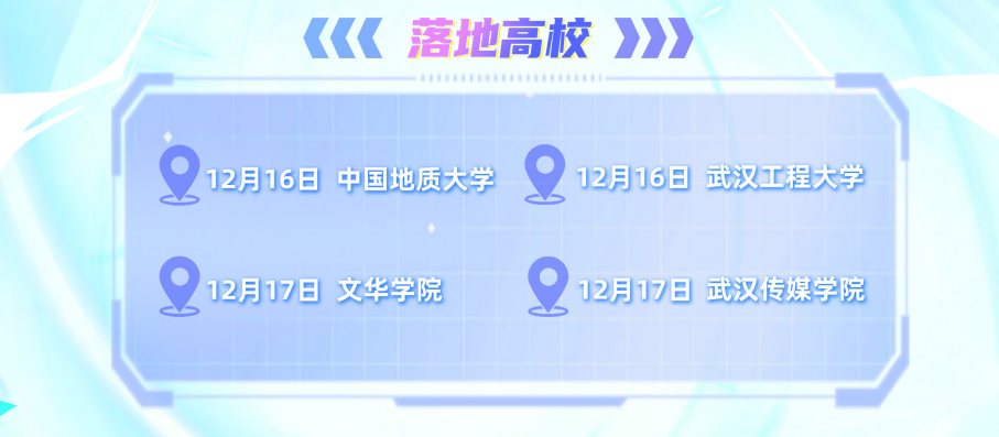 第一阶段时间:12月16日-17日地点:中国地质大学、武汉工程大学(流芳校区)、文华学院、武汉传媒学院